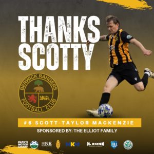 The club thanks Scott-Taylor for all of his efforts, particularly in last season’s fight to retain our Lowland League status. We also thank Scott-Taylor’s sponsor for this season, the Elliot family.